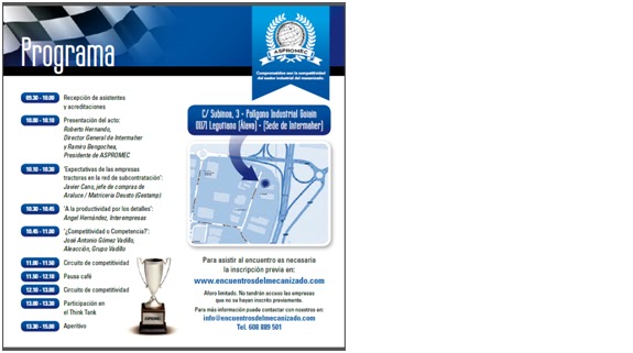 El miercoles 28 de septiembre de 2011, se celebrará el noveno Encuentro del Mecanizado en Bilbao.
