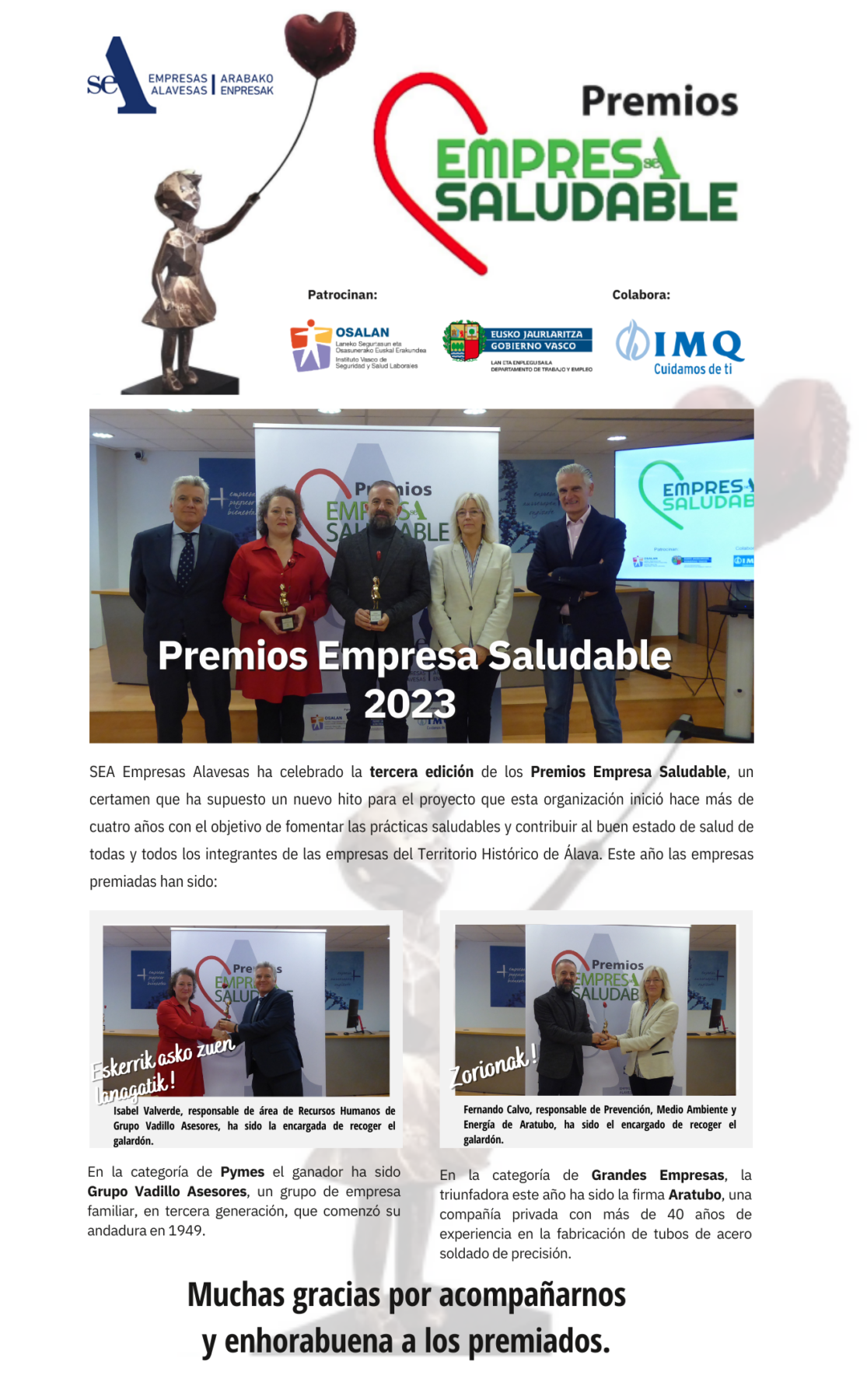Premio Euskalit otorgado por las Buenas prácticas en RSE.